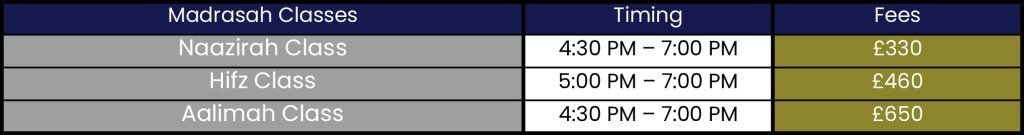 At Jaamia Masjid Aqsa we run evening and weekend classes. We provide Hifz, Nazirah and Alim classes for both boys and girls. Our curriculum includes Islamic studies syllabus of Safar Publications Books and Tajweed programme. All teachers are experienced in working with young children and teenagers alike. All staff are certified Hafiz/ Alim and DBS Cleared.